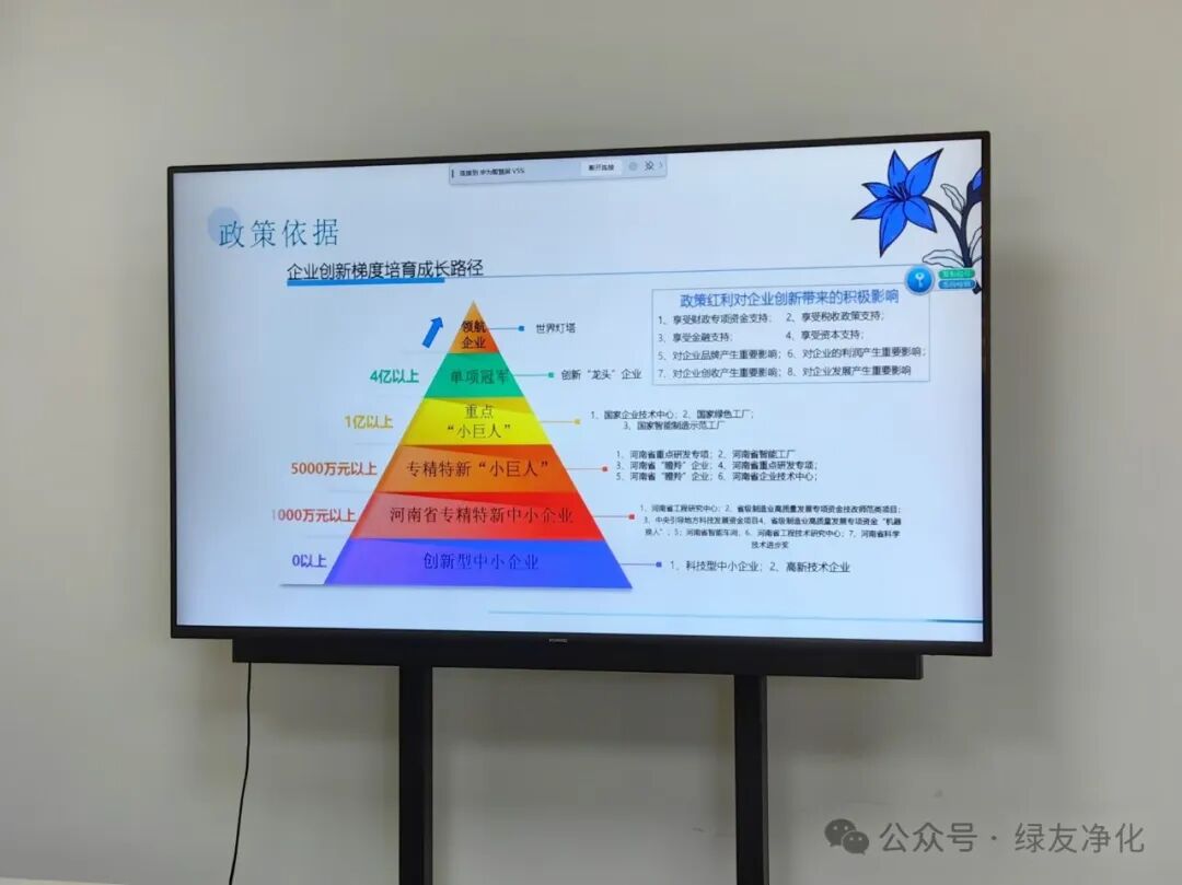 专家的到来为绿友环境带来了最新的政策解读与指导。在当前国家大力推行专精特新政策的背景下,专家组深入企业,详细解读了相关政策的具体要求和实施细节,为绿友环境的发展指明了方向。专家组介绍了郑州市支持专精特新中小企业高质量发展的实施意见,让企业更加明确了自身在政策框架下的发展路径。同时专家组还根据绿友环境的实际情况,为企业提供了个性化的政策建议,帮助企业更好地利用政策资源实现快速发展。